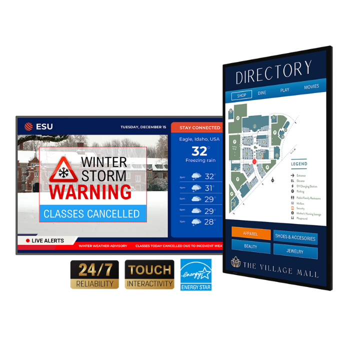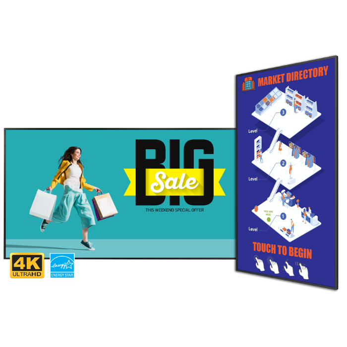 Value digital signage for 24x7 use with media playback, streaming and optional touch. Available in 43" - 86" sizes.